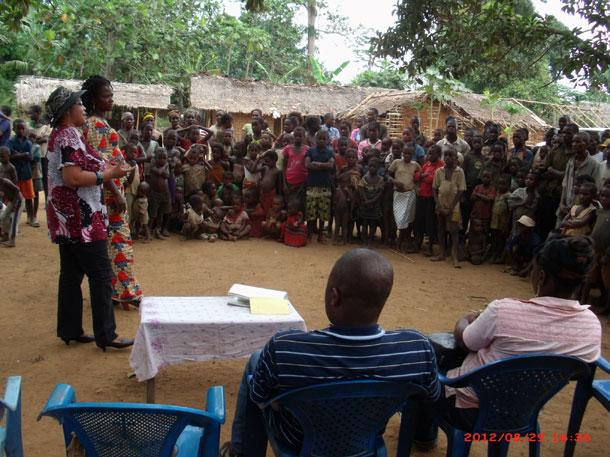 Mbandaka, 31 août 2012 – En vue des prochaines élections provinciales et locales en République démocratique du Congo (RDC), le Bureau de la Mission de l'Organisation des Nations Unies pour la Stabilisation en RDC (MONUSCO) de l'Equateur a décidé de sensibiliser les femmes de cette province sur leurs droits civiques, en ciblant tout particulièrement les femmes de la communauté pygmée.