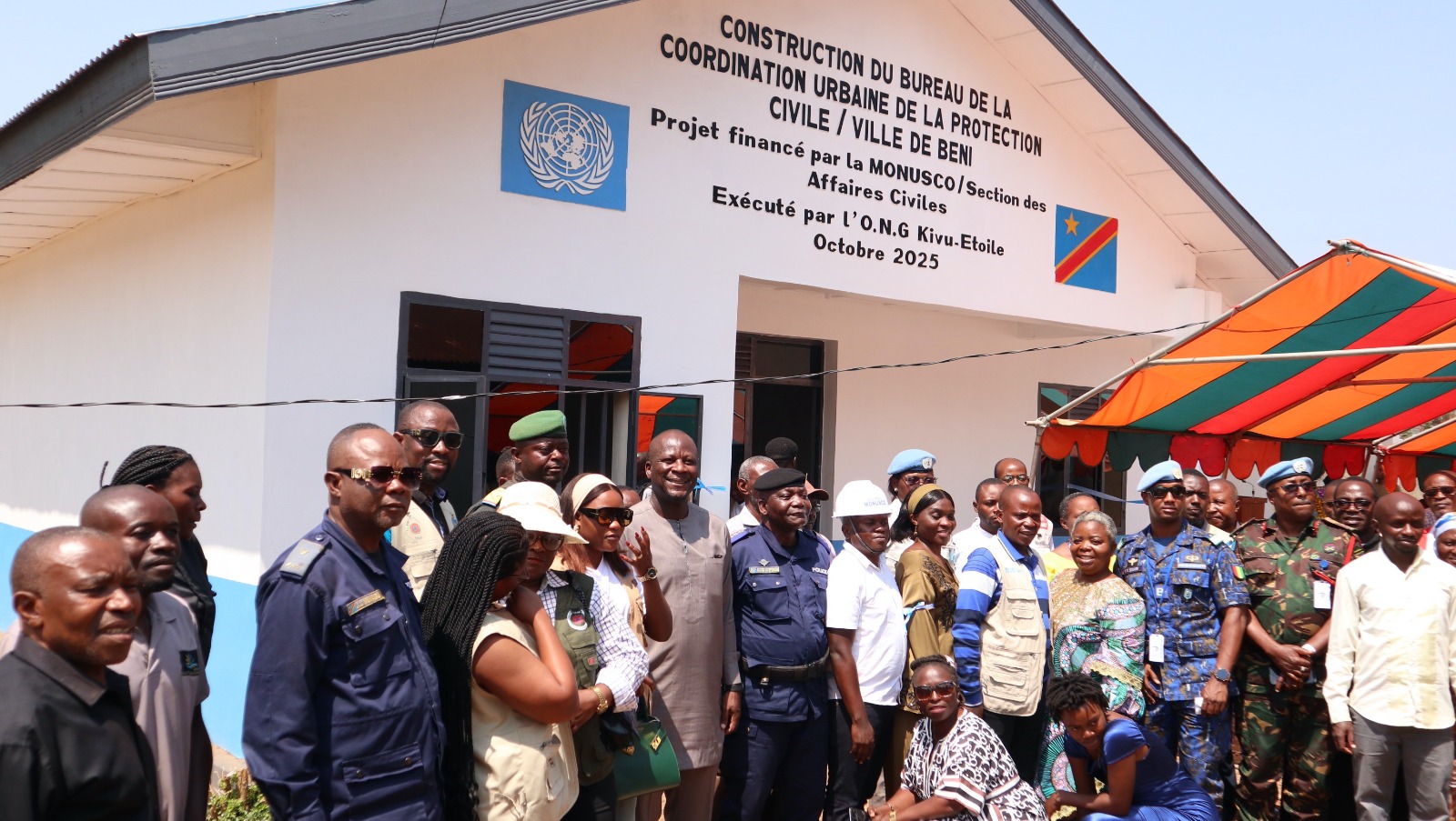 The Urban Coordination of Civil Protection in Beni officially received its new headquarters on Tuesday, December 2. Located behind the city's administrative building on Nyamwisi Boulevard, in the commune of Beu, Byahutu neighborhood, this modern building was financed to the tune of $47,847 by MONUSCO, as part of its Quick Impact Projects (QIPs).