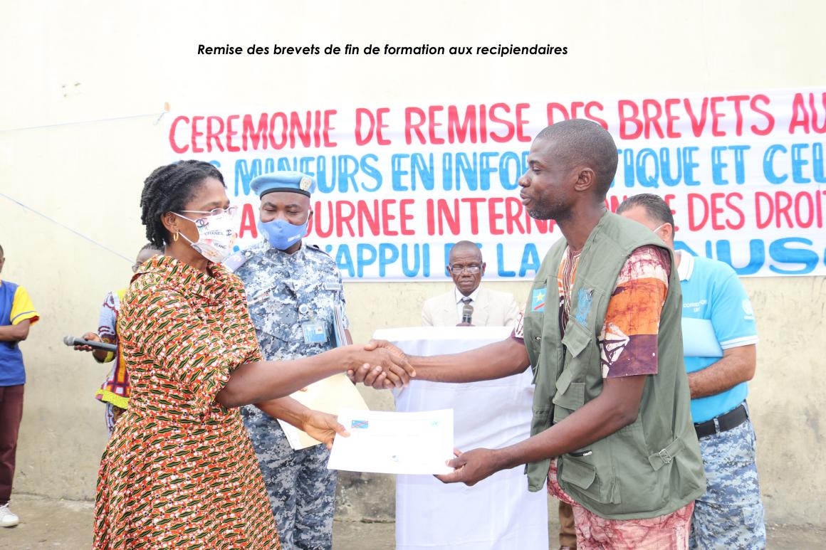 On the occasion of the World Children's Day celebrated on November 20 of each year, MONUSCO Prison Administration Support Unit issued end-of-training certificates to future computer trainers of the inmates detained at Makala central prison.