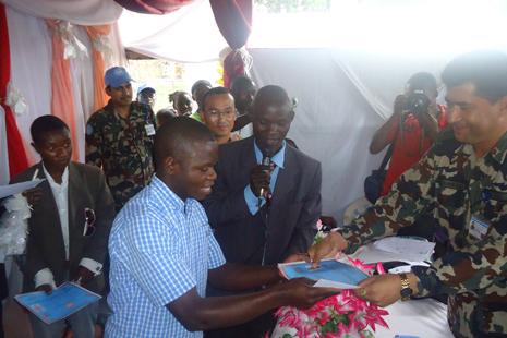 Photo: Maj Ramesh Gurung/MONUSCO Beni, 30 September 2011 – Peacekeepers of the 15th Nepalese Battalion awarded seven students their graduation certificates at a ceremony organized in Beni, Nord Kivu province, on 28 September…