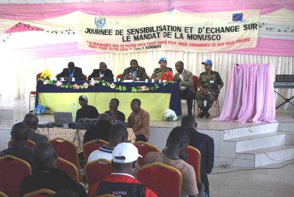 3 January 2013 - The Nord Kivu Civil Society Provincial Coordination, in collaboration with the Civil Affairs and Public Information sections of the United Nations Organization Stabilization Mission in the Democratic Republic of Congo (MONUSCO), organized a forum to raise public awareness about MONUSCO's mandate. Approximately 300 participants representing religious groups and ethnic communities of Nord Kivu, as well as universities and colleges of Goma, attended the forum which allowed them to get acquainted with the mandate of MONUSCO.