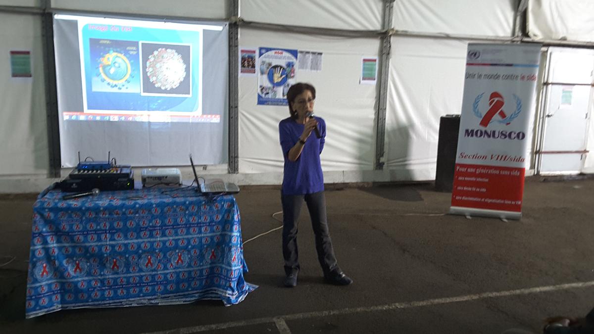 Goma, 7 February 2018 - During her recent contact tour in the North Kivu Province, the deputy chief of MONUSCO expressed MONUSCO's determination to scale up the fight HIV and AIDS. Accompanied to the field in Goma by the MONUSCO HIV/AIDS Section's outreach team, Ms. Bolduc urged MONUSCO peacekeepers to respect the HIV prevention rules in order to properly carry out their mission in the DRC. She reminded them that it is by respecting these preventive methods that one can change behaviour and then respect the rules of the UN in the workplace.