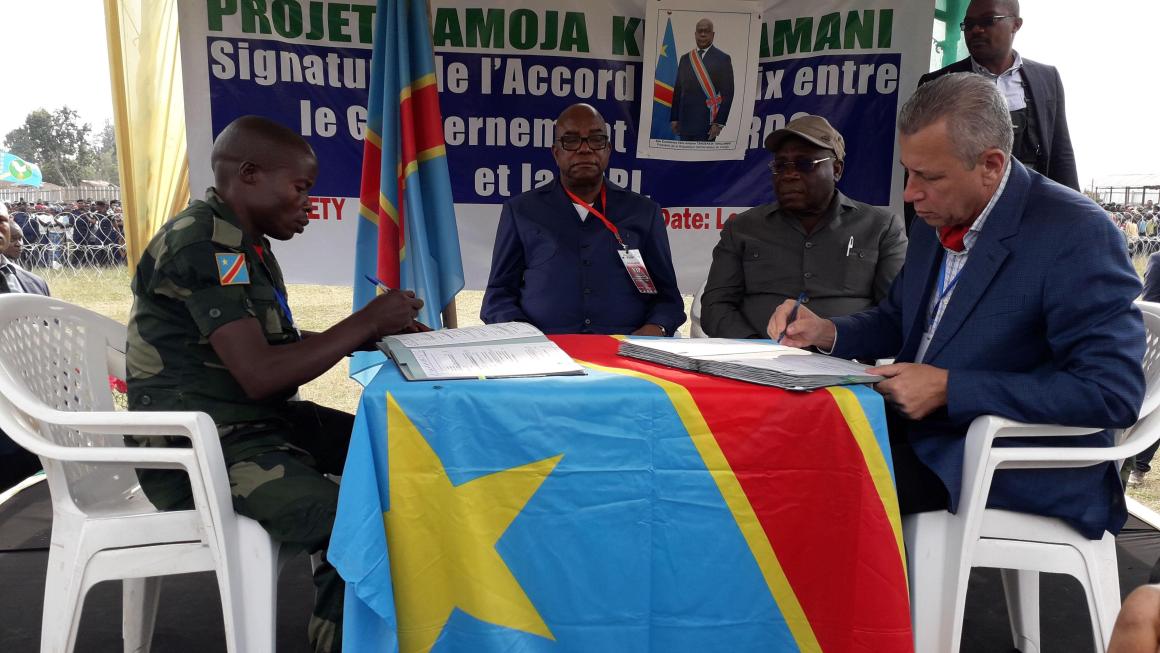 Mbadu Adurodu, the self-proclaimed "general" and commander of the FRPI, expressed satisfaction: "I am extremely happy to witness the signing of this agreement after the two aborted attempts. We agreed to leave the bush because we were tired of living there; we want peace, we are Congolese and we want to serve our country. "