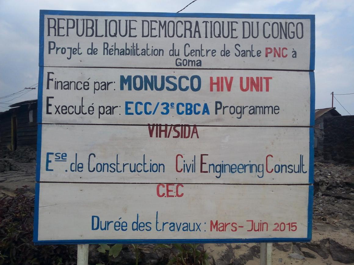Goma, 17 August, 2015 – The evaluation visit of the construction site of the PNC Health Centre in the town of Goma , funded by MONUSCO through its HIV/AIDS Section, took place in the afternoon of Thursday, 13 August, 2015.The purpose of the visit was to discuss with the beneficiaries – the PNC and the implementing partners – the Baptist Community in Central Africa (CBCA).