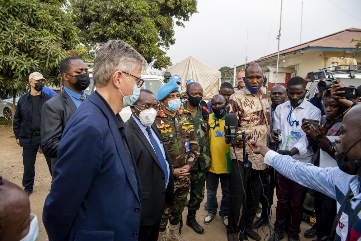 Arriving shortly before 1pm local time in Bunia, Jean-Pierre Lacroix was joined by the Congolese Minister of National Defence, Gilbert Kabanda, who came specially from Kinshasa. Together with the head of MONUSCO, Bintou Keita, her deputy in charge of operations and protection, Khassim Diagne, the UN force commander in Congo, General Afonso Da Costa, and the head of the MONUSCO office in Ituri, Josiah Obat, they reviewed the security and humanitarian challenges facing the province of Ituri, which has been under a state of siege since May 2021. In this province, the activities of local and foreign armed groups have resulted in more than 1.8 million displaced people across the province.