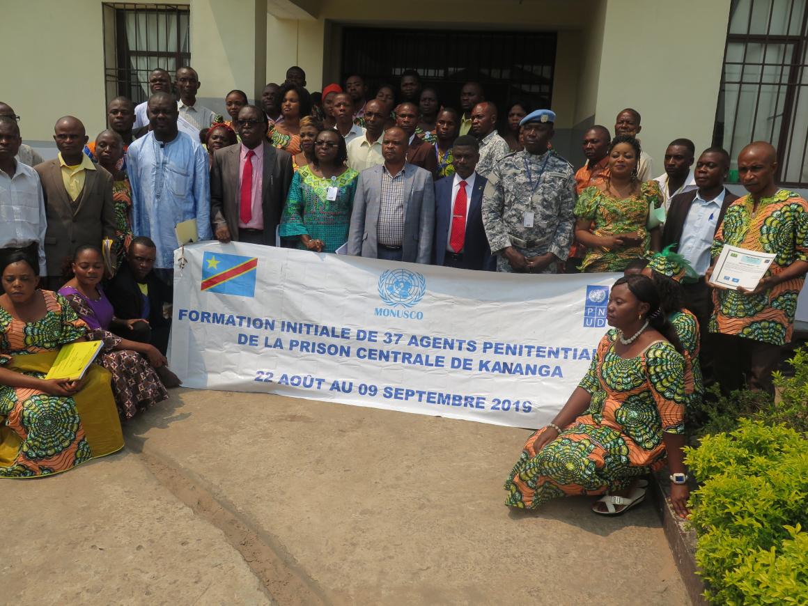 Thirty-seven (37) prison staff members, including 17 women, of the Central Prison of Kananga on Monday, September 9, 2019, received training on maintaining order in the prison environment. The training course, which lasted 21 days, was financially supported by the United Nations Stabilization Mission in the Democratic Republic of Congo (MONUSCO) and the United Nations Development Program (UNDP).