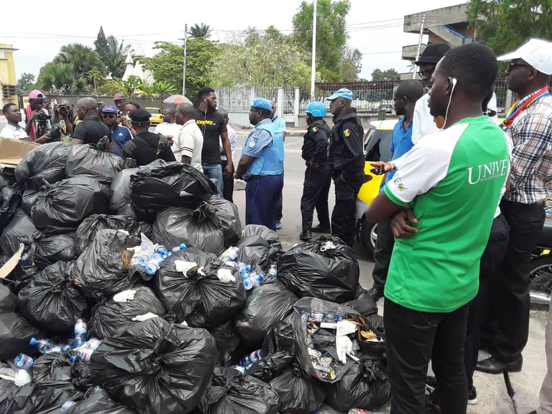 On this occasion, the MONUSCO police interacted with young people from the "Monitoring Committee for the actions of the Head of State" gathering in “Place des evolués”, in Gombe, as part of an awareness campaign on the cleanliness of the city, dubbed 'Kinshasa Clean City'.