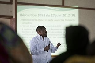 The head of MONUSCO Public Information in Goma, Alexandre Essomé, opened the session with a general presentation on the role of the UN Mission in the DRC.