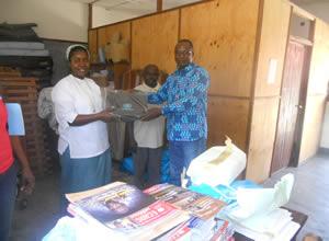 The donation was made up of threehundreds magazines, schoolbags and umbrellasdestined for at least a hundredvulnerableschool children including 23 girls on the boardingschool the oldest of whombeing 17 yearsold. According to the nun, the donation of the schoolstationery has come at the right time insofar as «itwillspare us major expensesatthisdifficult time,» said the nun.