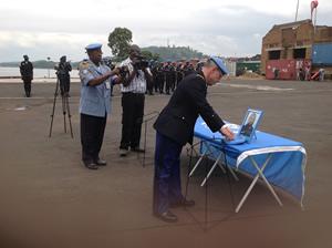 Goma, November 7th, 2014. MONUSCO Police on Friday 7 November paid their last respects to two Senegalese police officers who recently died while still serving in the North-Kivu province. The ceremony took place at one of MONUSCO bases in Goma and was attended by MONUSCO senior civilians and military officials as well as General Awashango Vital, Congolese national police commander in the North-Kivu province. Staff sergeant Moussa Sagna and sergeant chief Alioune Diagne respectively died in September 2014 in South Africa and in October 2014 in Goma. For MONUSCO Police Commander in Chief, General Pascal Champion, the professional skills displayed by both Senegalese officers will be remembered as symbols of sacrifice for the Mission. Moussa Sagna and Alioune Diagne were posthumously awarded UN medals.