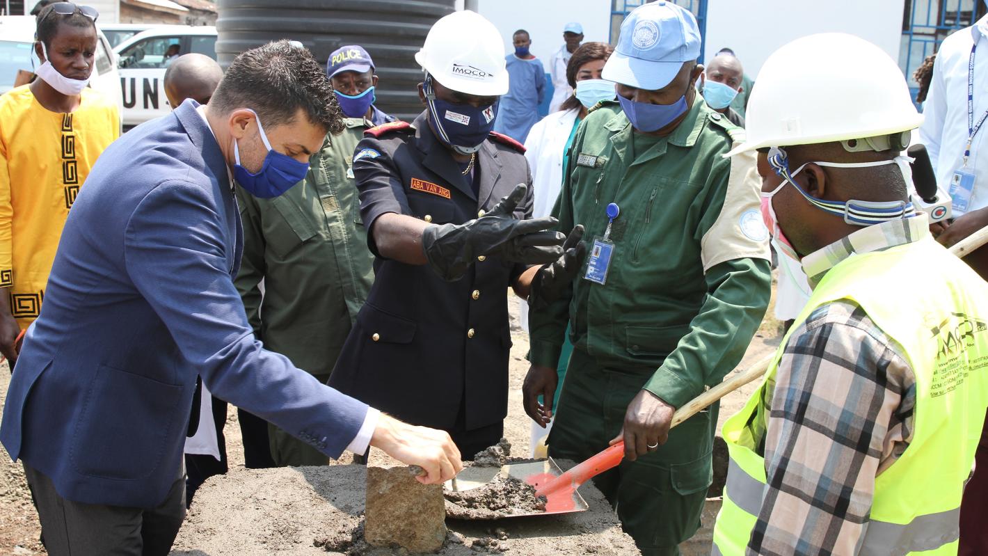 On July 29, 2020, Omar Aboud, chief of MONUSCO/Goma Petit Nord office, and General Aba Van Ang, the provincial commissioner of the Congolese national police in North-Kivu, jointly laid the foundation stone for the construction and rehabilitation of the police health centre in North-Kivu.
