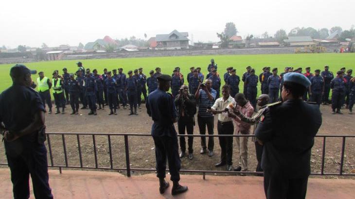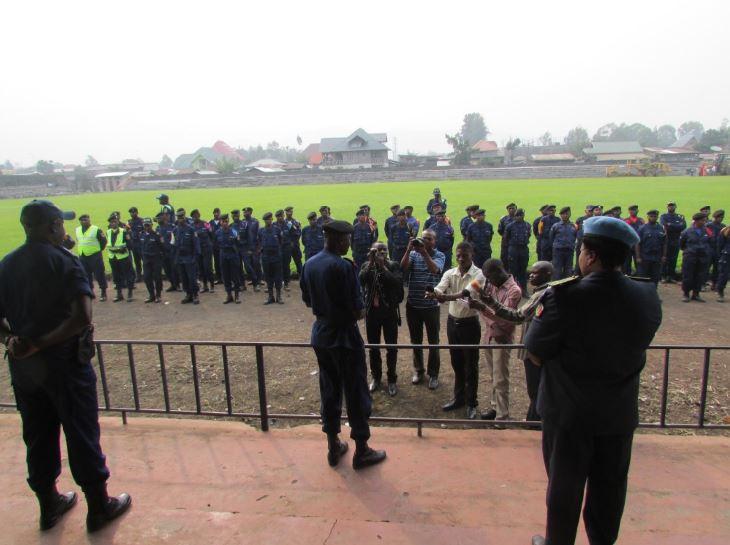 In an official ceremony in Goma on 20 July 2015, General Vital Awachago Umiya, Provincial Commissioner of the Congolese National Police (PNC) in North Kivu, launched an election security training session for a first group of 65 police officers. The ceremony took place at the town’s Stade de l’Unité, in the presence of United Nations Police (UNPOL) officials, including Deputy Chief of Goma Sector in charge of training, and UNPOL trainers and their PNC counterparts.