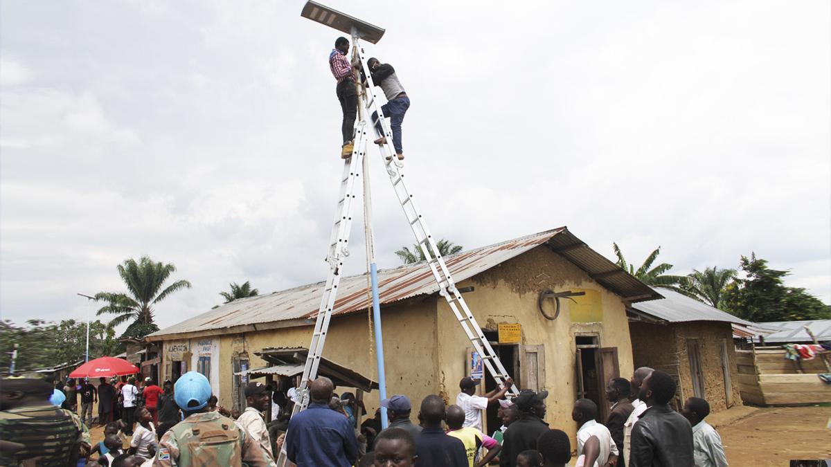 Samboko, a village located 58 kilometers from the city of Beni in North Kivu, now has public lighting. Before MONUSCO installed solar streetlights there, the population faced darkness which caused cases of insecurity perpetrated by armed groups.