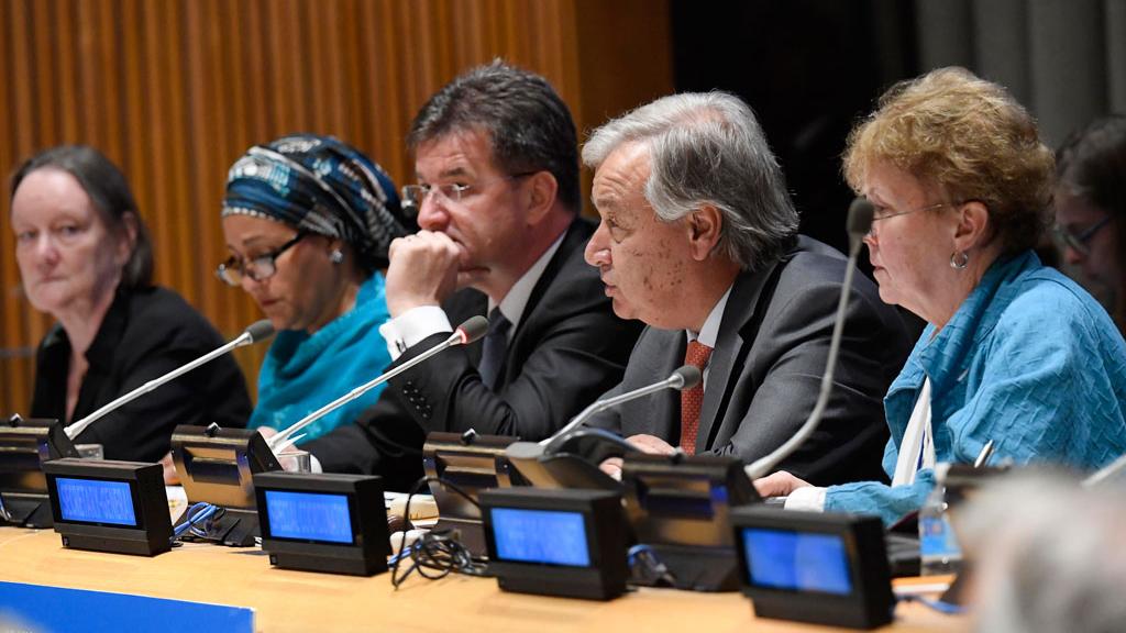Secretary-General António Guterres (2nd right) delivers his remarks at the high-level meeting on the Prevention of Sexual Exploitation and Abuse. UN Photo/Evan Schneider