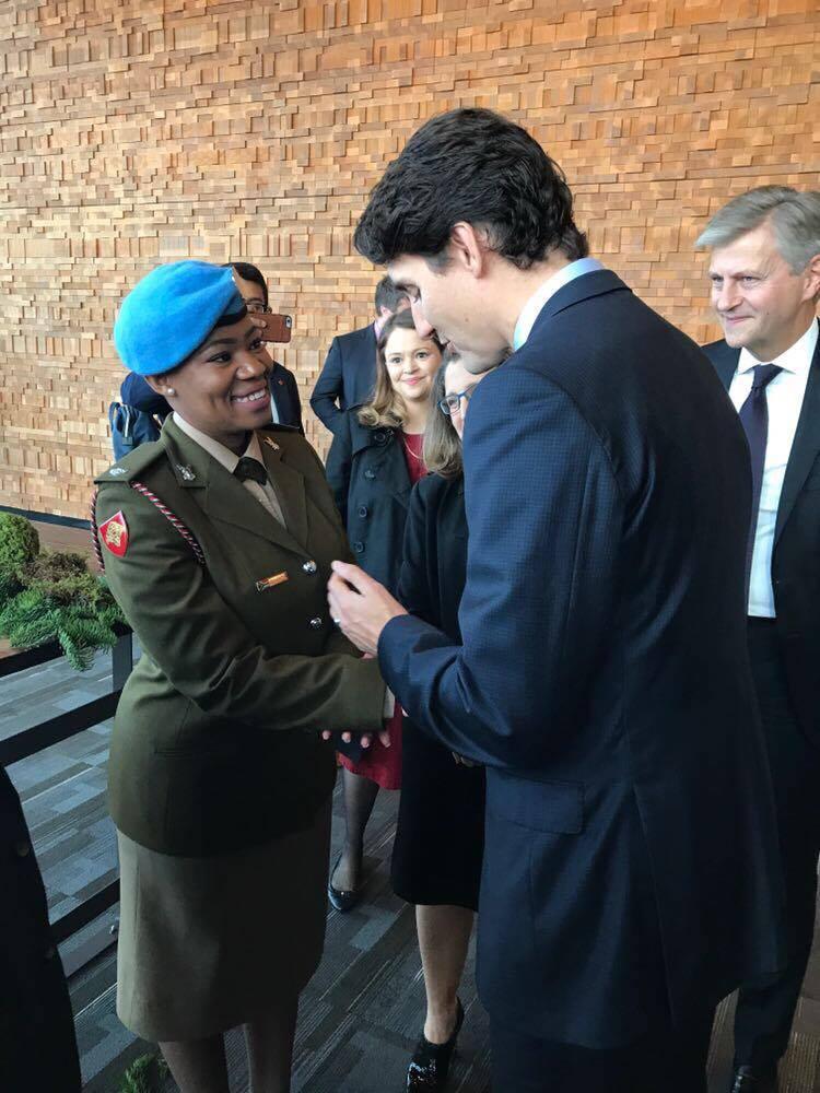 Canadian Prime Minister Justin Trudeau and the Under-Secretary-General for Peacekeeping Operations, Jean-Pierre Lacroix, presented the award to Major Seitebatso Pearl Block as part of the UN Peacekeeping Defence Ministerial taking place from 14-15 November for her outstanding work on the frontlines of UN peacekeeping.