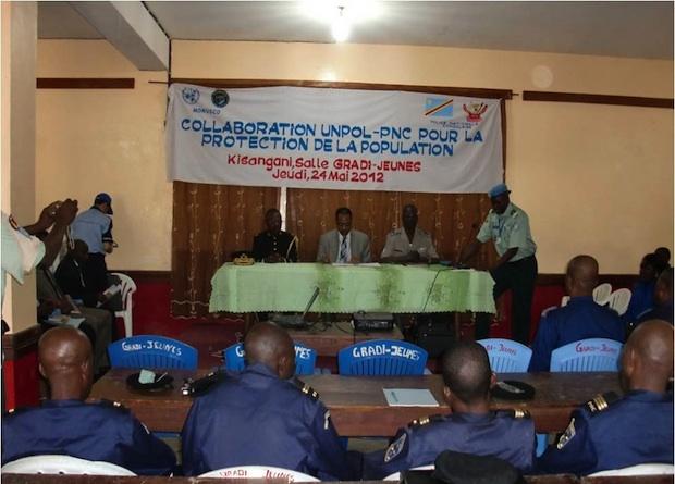 Kisangani – 25 May 2012 – The United Nations Police (UNPOL) held, on 24 May 2012, a day-long training workshop for some 32 Congolese National Police (officers) to strengthen their ability to better protect civilian populations. Organized around the theme of "Collaboration between UNPOL and PNC for population protection", the workshop aimed at building in these police officers a sense of what is appropriate behaviour in dealing with the population.