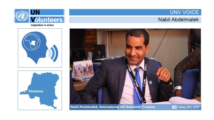 UN Volunteer Nabil is talking about his work and experience as a Public Information Officer for MONUSCO.