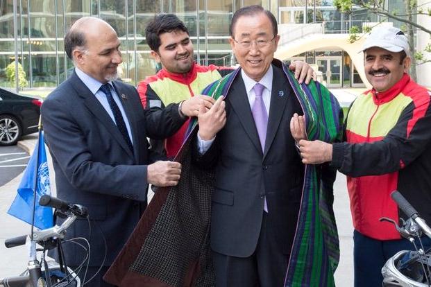 NEW YORK - On a round-the-world trip to promote peace that included cycling 7,000 miles from Istanbul, an Afghan father and son arrived Friday morning at United Nations Headquarters in New York, the final destination of the…