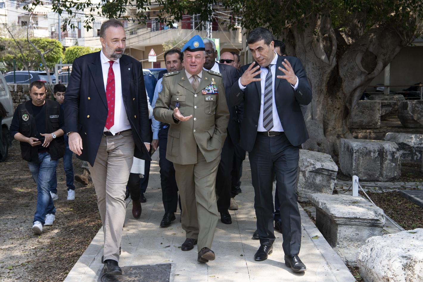UNIFIL head Maj. Gen. Stefano Del Col (centre) with Mr. Karl von Habsburg (left), President of Blue Shield International, and Mr. Sarkis Khoury from the General Directorate of Antiquities of Lebanon, during the Blue Helmet…