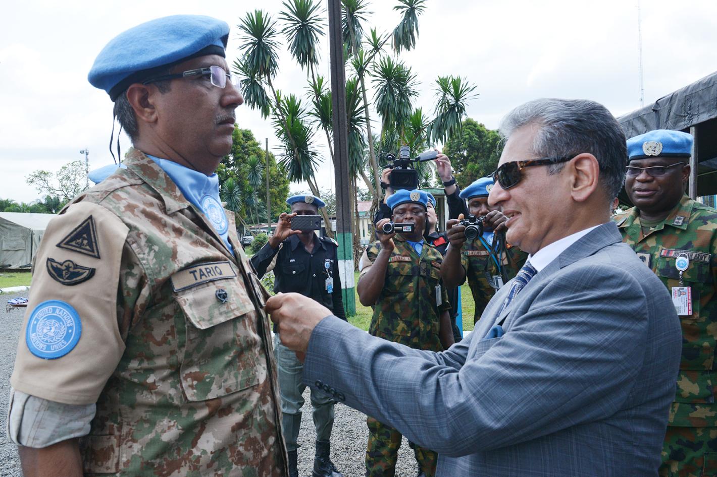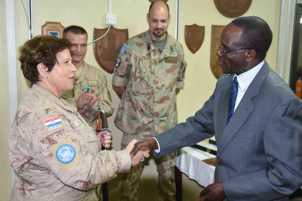Lieutenant Colonel Vesna Megic with Chief of Mission Support, Nester Odaga-Jalomayo during her farewell ceremony. Lieutenant Colonel Vesna Megic left the United Nations Military Observation Group in India and Pakistan…