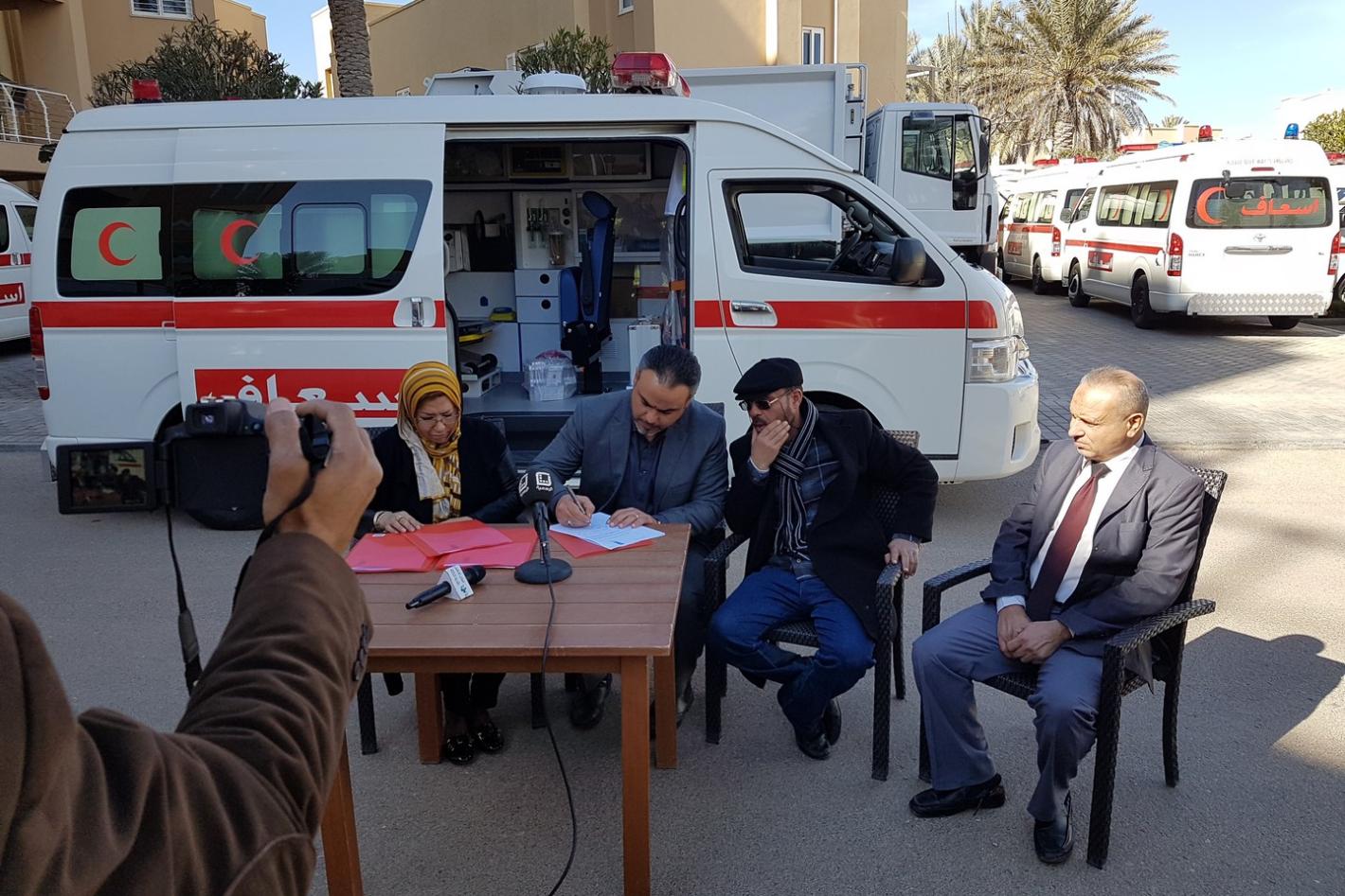 Tripoli, Libya - The Ministry of Planning of the Government of National Accord handed over two ambulances, two generators and 60 computers to the municipality in Kikla, part of a relief package to improve basic services there…