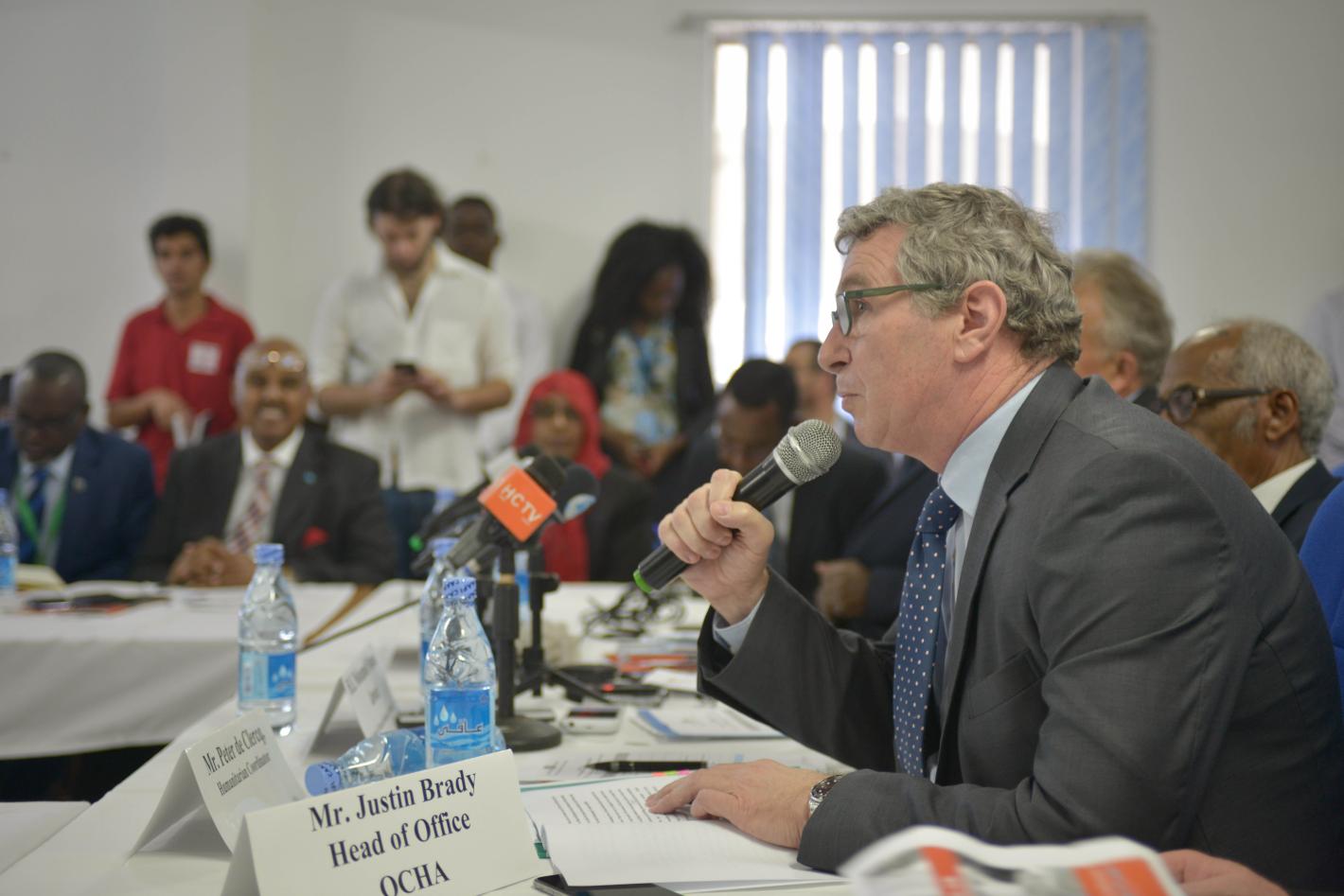 The Deputy Special Representative of the United Nations Secretary-General for Somalia and Resident Humanitarian Coordinator, Peter de Clercq, speaks at an event in Mogadishu, Somalia, on 17 January 2017, to mark the launch of a humanitarian response plan by the United Nations and international donors in the face of a prolonged drought, which is leading to food insecurity in the country and even a possible famine. UN Photo