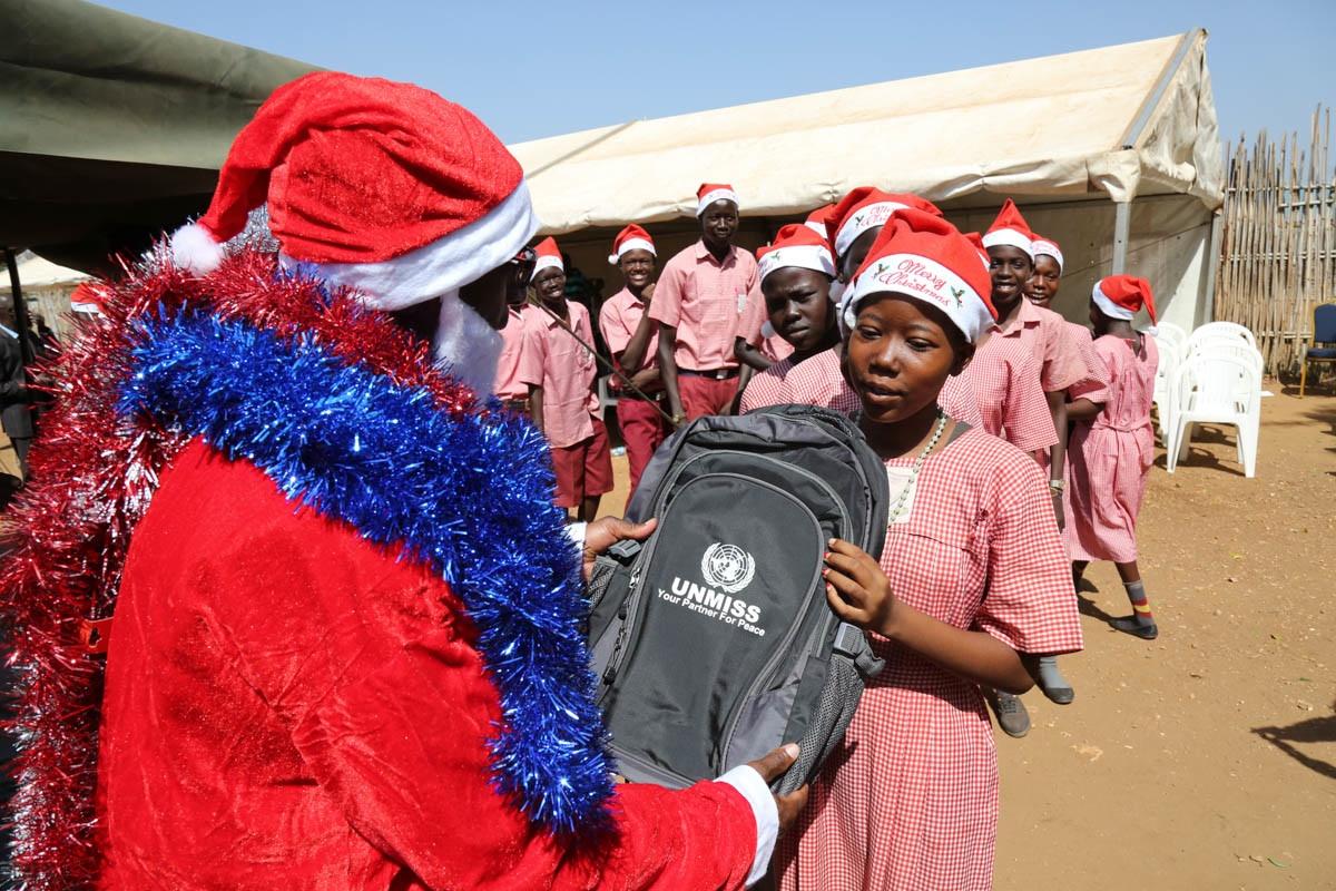 UNMISS Juba celebrates Christmas at St. Thomas Primary School with “special guest from the East”.