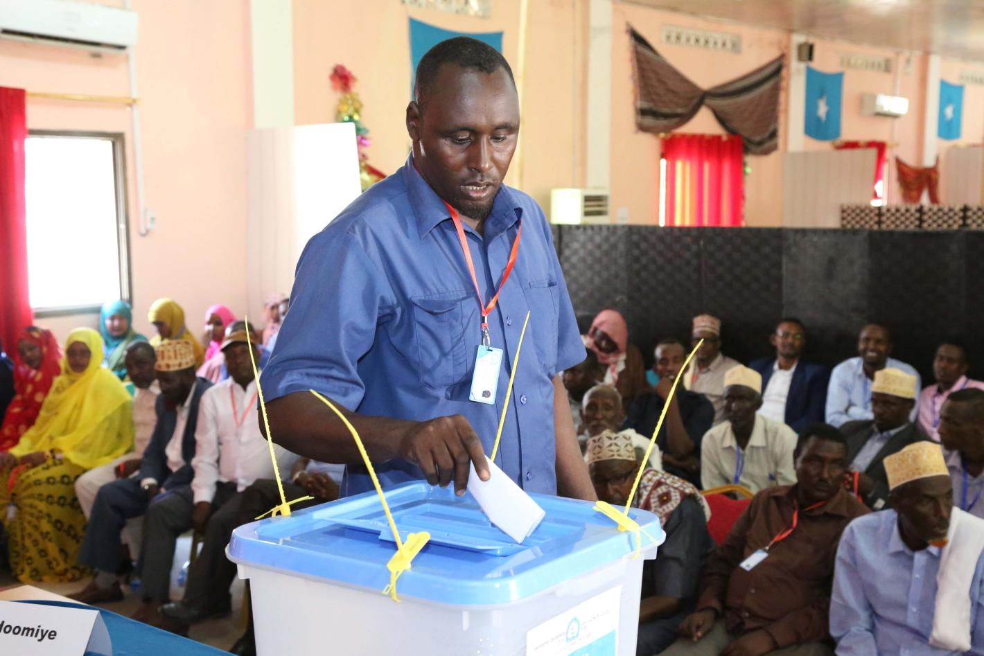 A delegate votes during the electoral process to choose members of the House of the People in Jowhar, Somalia on 4 December 2016. UN Photo