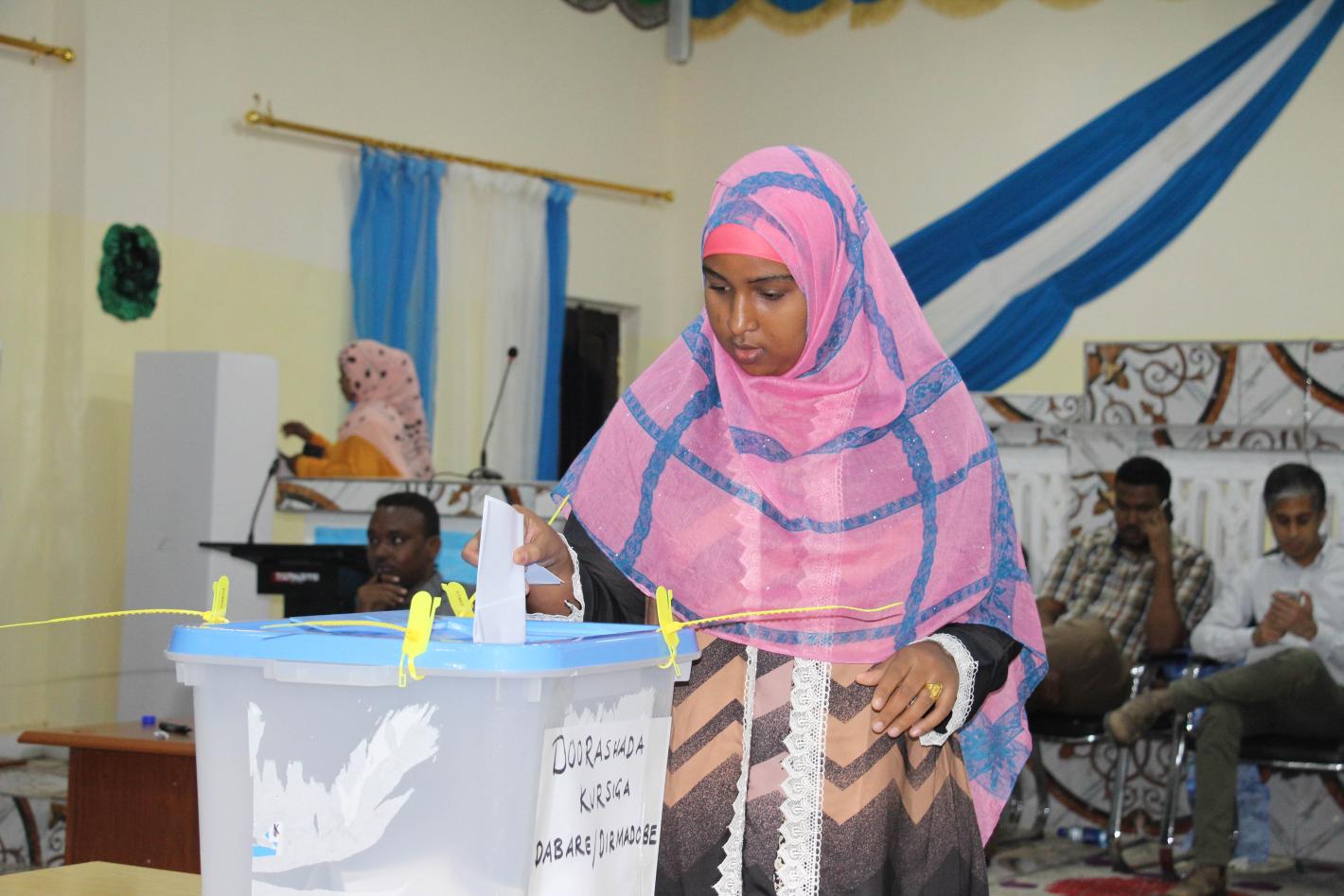 A delegate casts her vote during the electoral process in Baidoa, Somalia on 5 December 2016. UN Photo