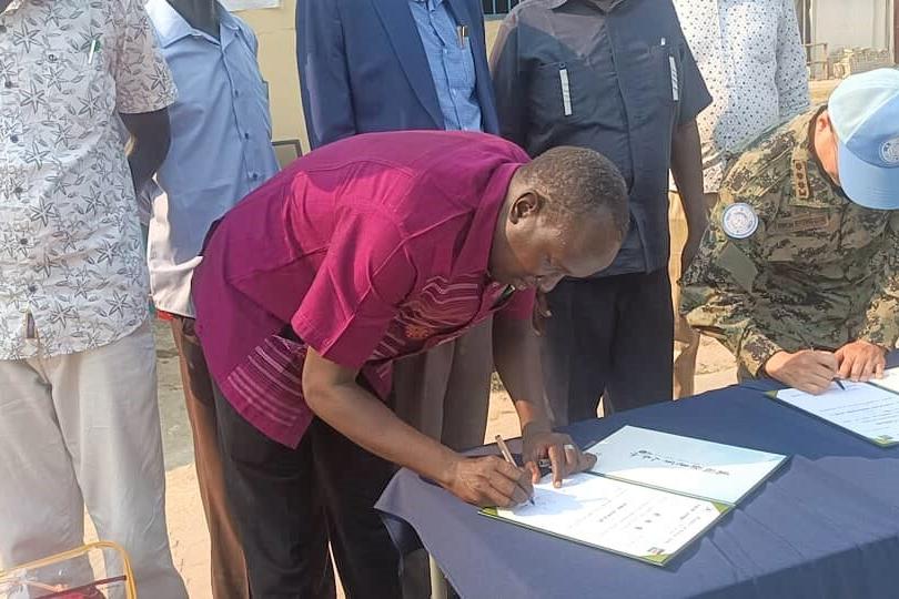 South Korean peacekeepers gifted more than 1,000 bars of soap, blankets, quilts, and intravenous fluids, essential for treating dehydration from cholera-related diarrhea, at an official ceremony at Bor Hospital. Photo by Mach Samuel/UNMISS.