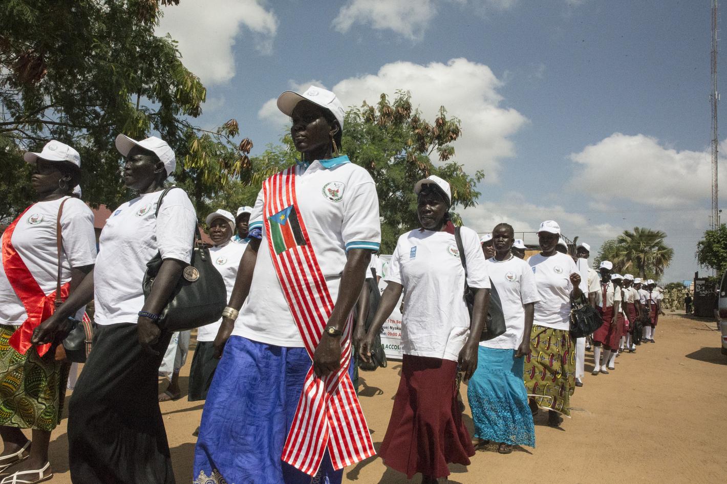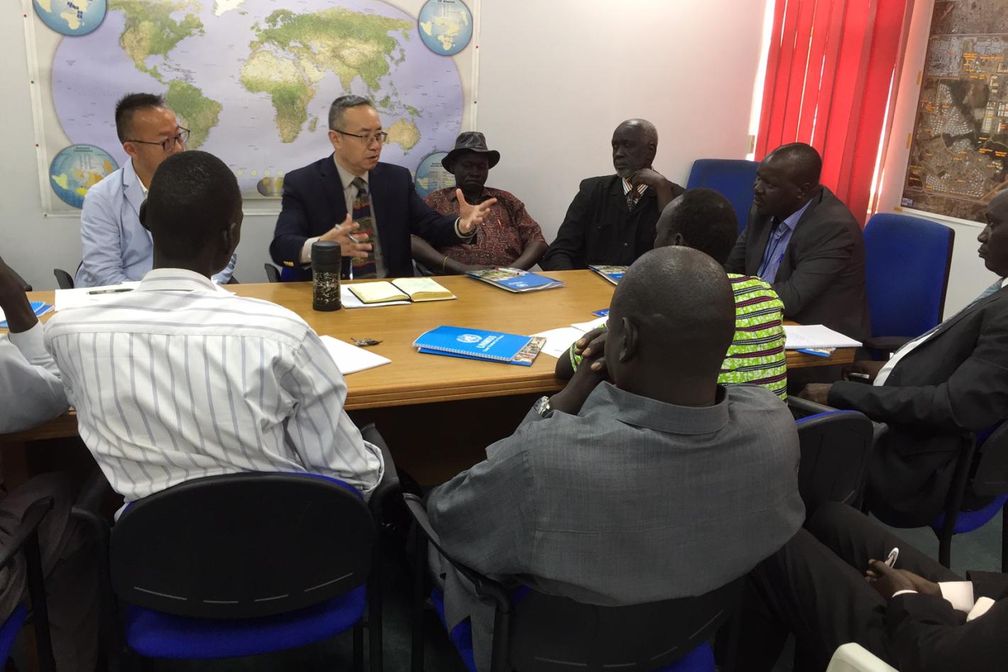 The Chairperson of the South Sudan Civil Society Alliance (SSCSA)Akuoch Ajang urges the public to stop using social media to fan ethnic hatred. Here seen at another occasion, in a meeting with UNMISS officials.