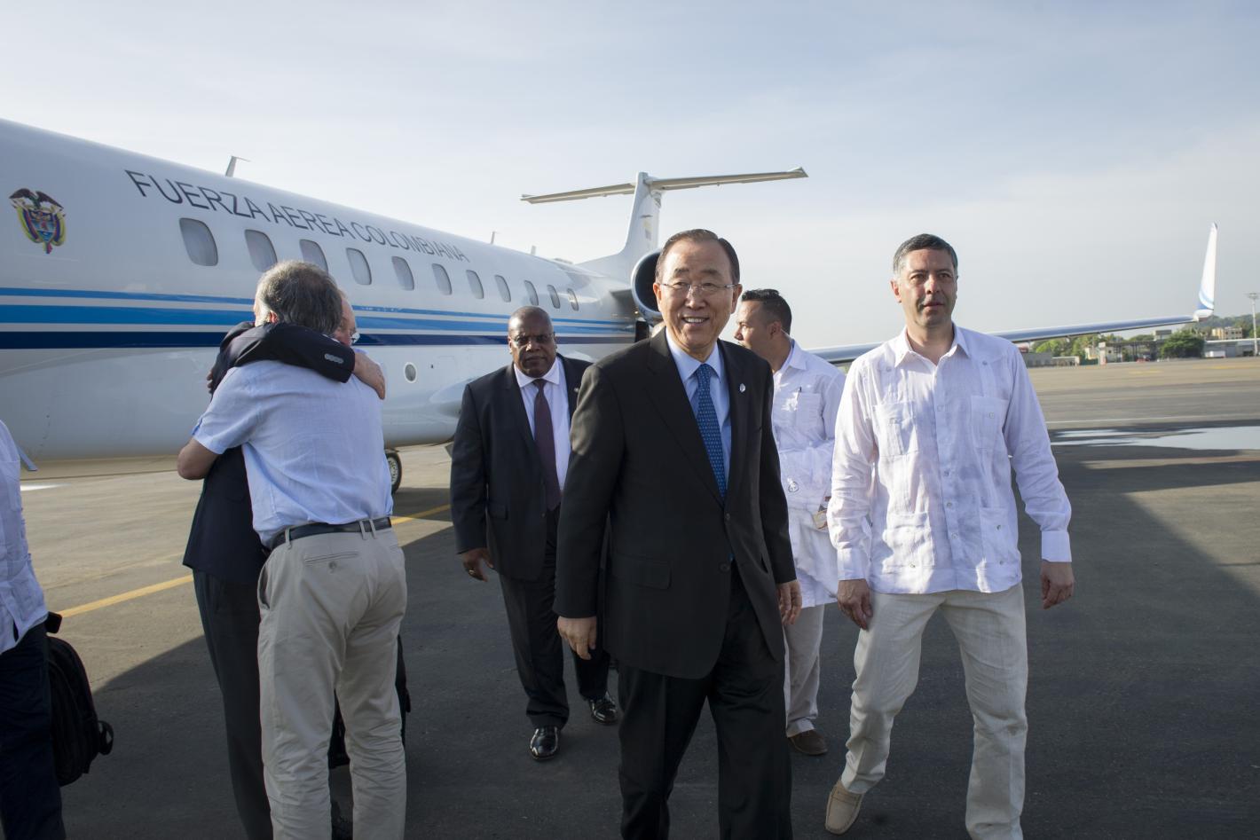 Secretary-General Ban Ki-moon arrives in Cartagena, Colombia. UN Photo/Rick Bajornas