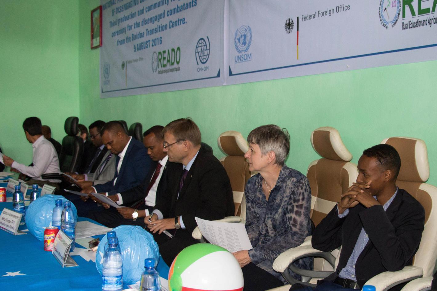 German delegates and other guests at the Disarmament Demobilization and Reintegration Center graduation ceremony for former Al-Shabaab combatants, in Baidoa.