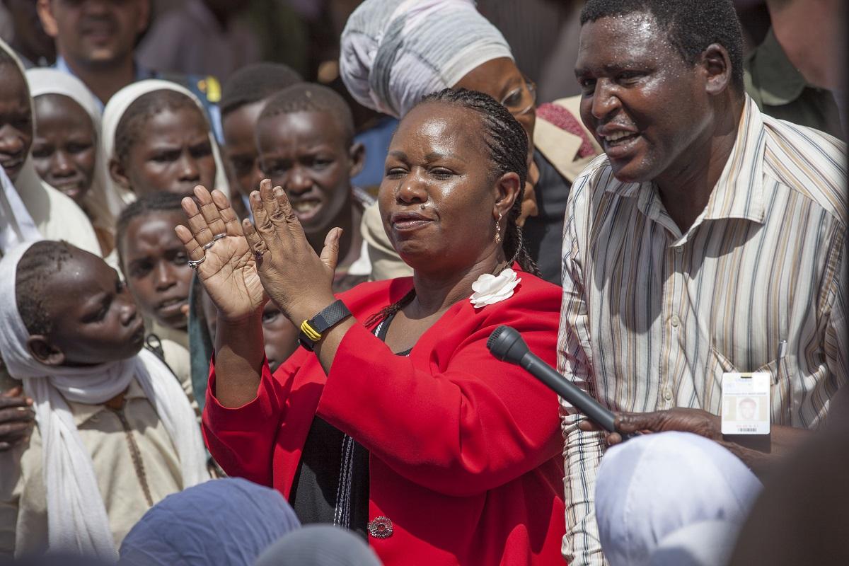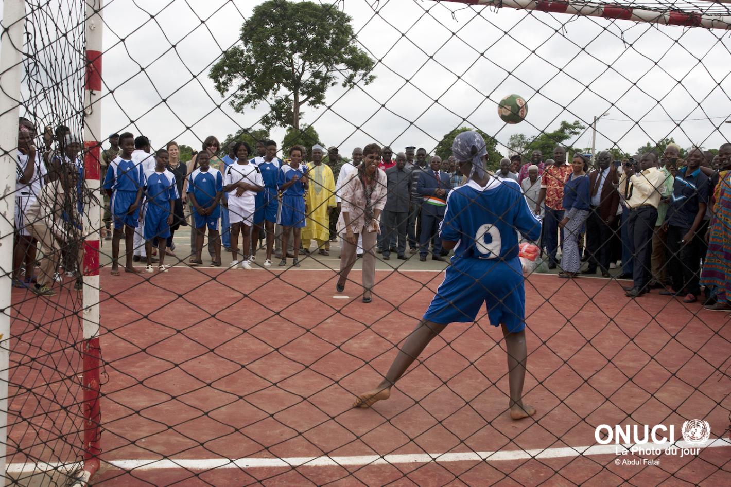 18 July is commemorated as the Nelson Mandela International Day. In his message, the UN Secretary- General, Ban Ki-moon, invited people around the world to devote at least 67 minutes to a community service activity. UNAMID marked the event with a clean-up and tree planting activity at a school in Zam Zam IDP camp, in North Darfur, attended by the DJSR-Protection, Bintou Keita. Photo by Hamid Abdulsalam, UNAMID.