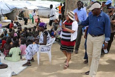 Acting UNMISS Chief Raisedon Zenenga visiting makeshift school at mission’s base in Jonglei State capital Bor where estimated 4,123 people are seeking shelter. Photo: UNMISS/UNMISS Photo