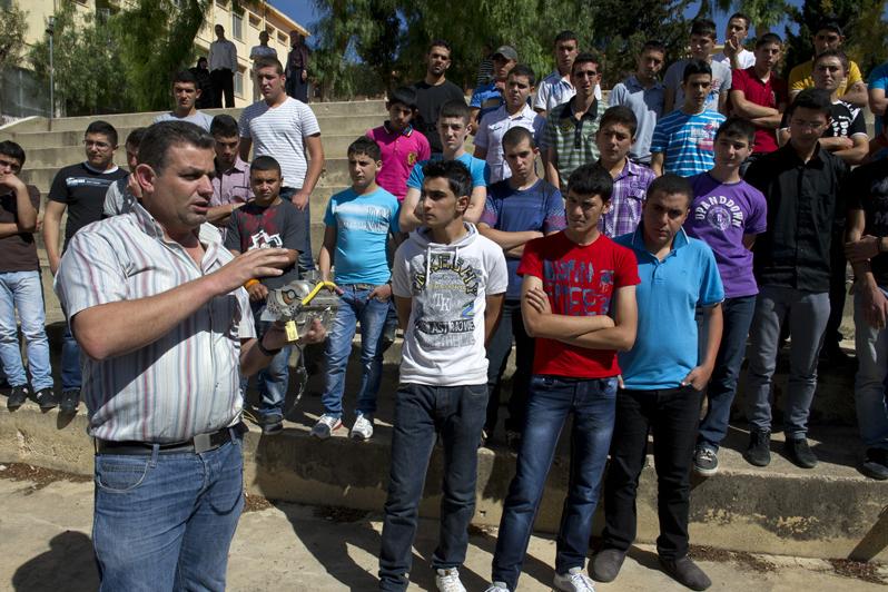UNIFIL Instructor George al-Alam explaining to Bint Jbeil Public Technical School students the airbag deployment mechanism.