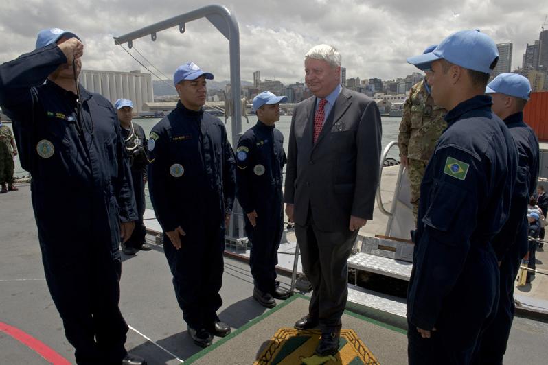Under Secretary-General for Peacekeeping Operations Mr. Herve Ladsous visits UNIFIL's Maritime Task Force on the flagship 'Constituicao' in Beirut harbor.