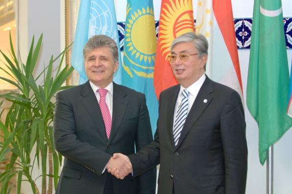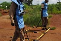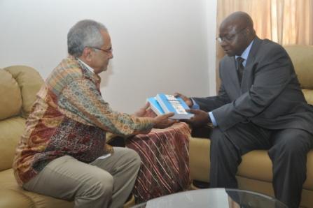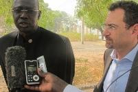 Deputy UNAMID JSR, Mohamed Yonis, and the chairman of the AU delegation, Ambassador Bulus Paul Zom Lolo of Nigeria, at El Fasher airport. Photo by Albert González Farran