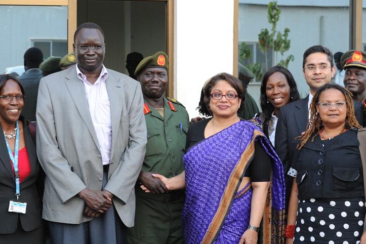 UNAMID peacekeepers with a pacient at Nyala prison. Photo by Kone Mouroulaye, UNAMID.