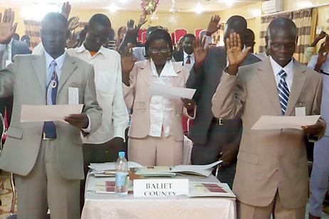 17 October 2010 - Southern Sudan Referendum Bureau (SSRB) Chairman Justice Chan Reec Madut swore in 65 referendum sub-committee members from 13 counties of Upper Nile State today in a ceremony in Malakal hosted by the state's…