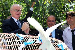 KABUL - Twenty-one white doves soared up into the blue sky from the lawn of the United Nations Assistance Mission in Afghanistan (UNAMA) today in celebration of Peace Day on 21 September 2009. As part of the International Day…