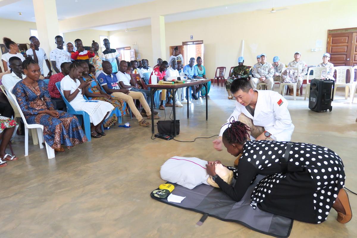 Practice makes perfect as students at the Catholic Health Training Institute learn new skills from UNMISS medical peacekeepers from China. Photo: Michael Wondi/UNMISS