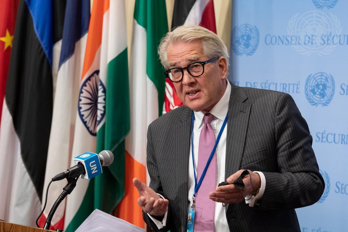 UN Special Coordinator for the Middle East Peace Process, Tor Wennesland, media stakeout (UN Photo/Eskinder Debebe - 30 November 2021)