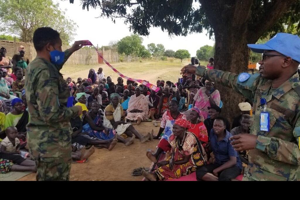 UNMISS peacekeepers from Rwanda demonstrating one effective tool to prevent malaria in an Eastern Equatorian community. Photos: Okello James/UNMISS
