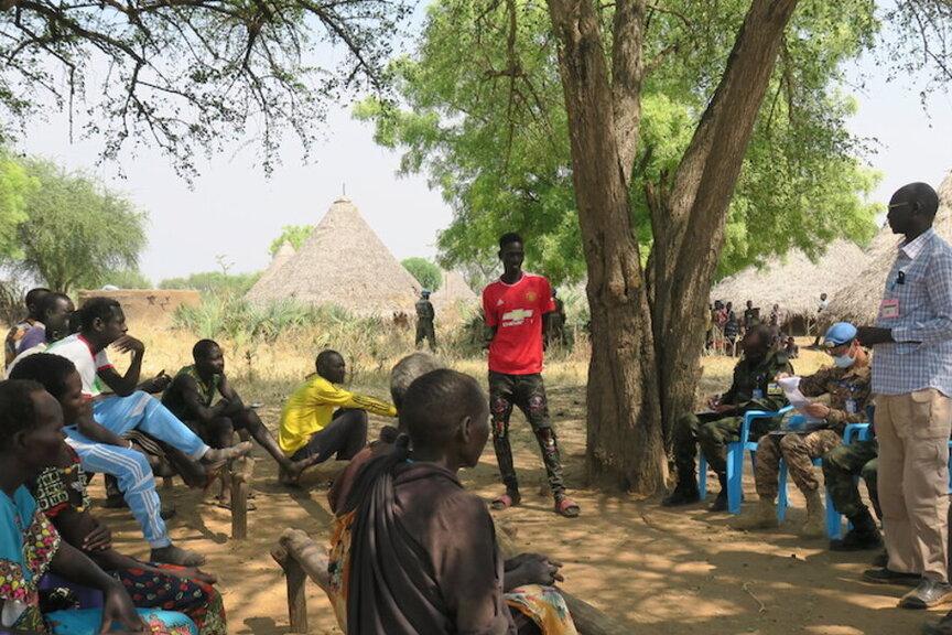 Women in Loguruny, a village in Eastern Equatoria State, interacting with an UNMISS patrol team. Photos: Moses Yakudu/UNMISS