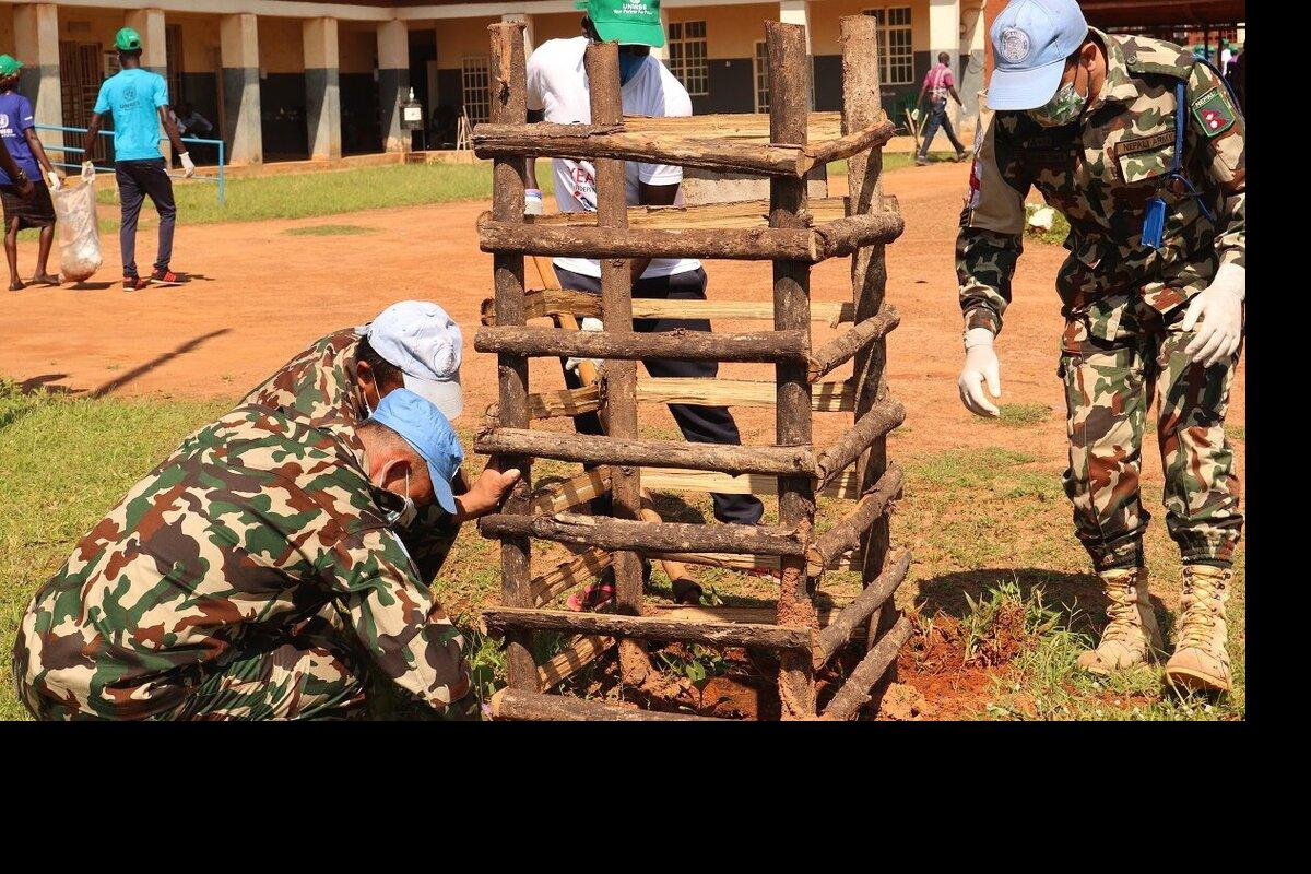 Some 50 young people in Yei commemorated last week's International Youth Day by volunteering to plant trees and clean up hospital premises. Photo by Surur Ali Aliye/UNMISS.
