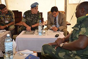 Beni, 10 July 2013 – General Carlos Alberto dos Santos Cruz, Force Commander for the United Nations Stabilization Mission in the Democratic Republic of Congo (MONUSCO), along with MONUSCO North Kivu Brigade commander, and Ray…
