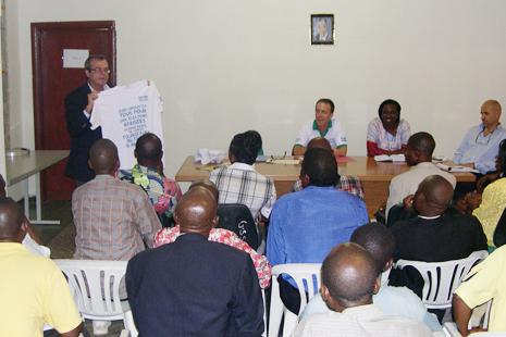 Briefing in MONUSCO Conference Room for the delegation. On the right the head of office M. Cheikh Bangoura, on the left the Police Commissioner of PNC M. Bisengimana. Pho to MONUSCO Piergiorgio Paglialonga . Mbuji Mayi 14…