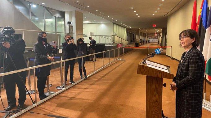 NEW YORK - Media stakeout following the briefing to the Security Council by the UN Secretary-General’s Special Representative for Afghanistan, Deborah Lyons.