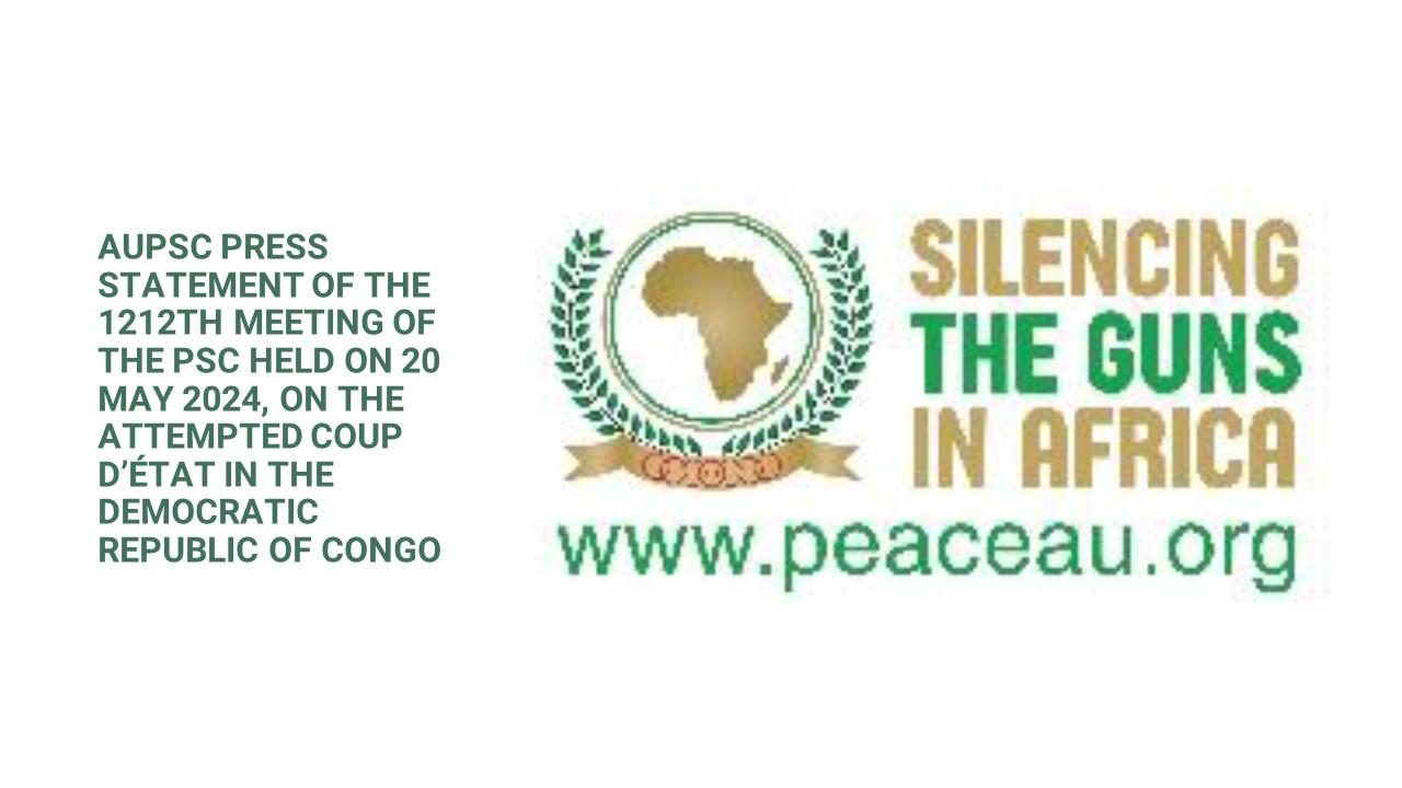 The Peace and Security Council (PSC) of the African Union (AU) its 1212th meeting, held on 20 May 2024, received a briefing on the attempted coup d’état in the Democratic Republic of Congo on the night of 18 to 19 May 2024.